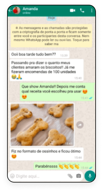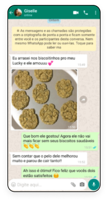 Se, por qualquer motivo, você não gostar do conteúdo do e-book 10 Receitas de Biscoitos para Pets, basta solicitar o reembolso em até 7 dias, e devolveremos 100% do seu dinheiro, sem perguntas e sem complicações. Você terá uma semana inteira para conhecer as receitas, testar, analisar e decidir se o material realmente vale a pena para você. E, sinceramente?